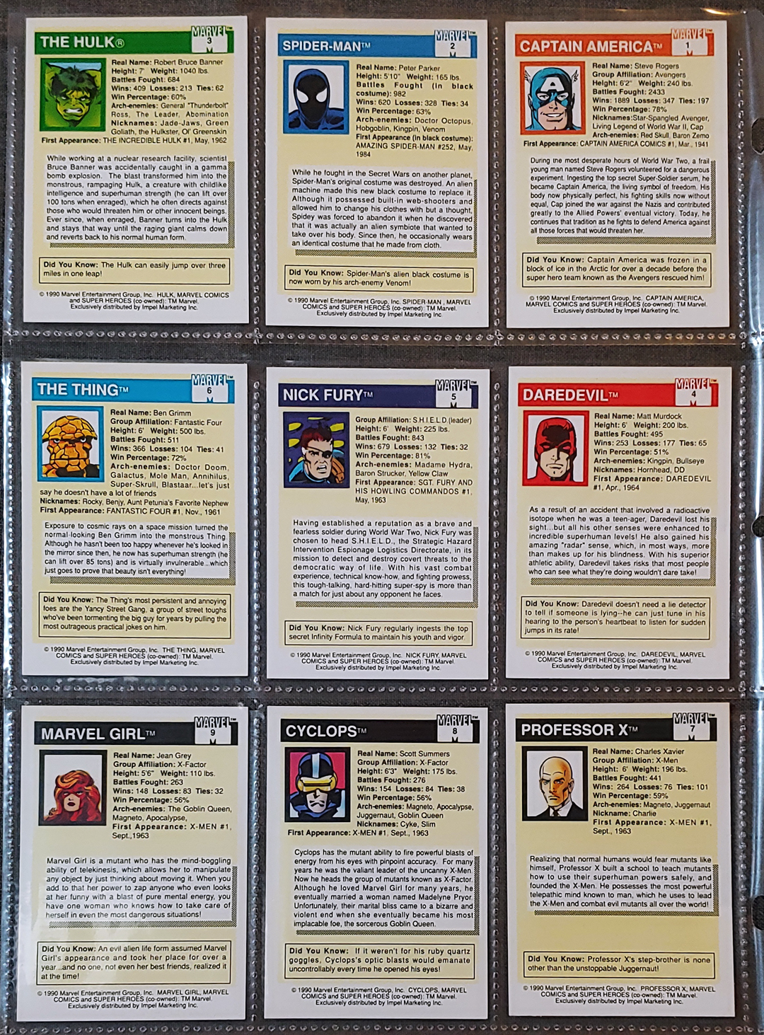 1990 Marvel Universe Impel Trading Cards: Series 1 – Complete Base Set No.1-No.162