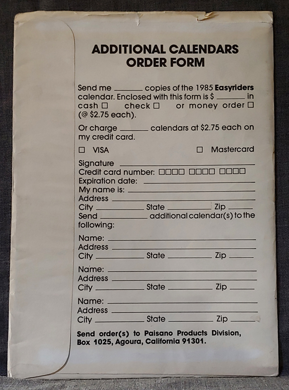 Easyriders 1985 Calendar – Still Sealed – New Old Stock