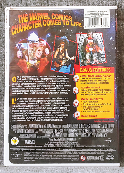 Howard The Duck – DVD – Directed By Willard Huyck – StarringĀ Leah Thompson, Jeffery Jones, Tim Robbins – 1h51mins – Universal Pictures – 1986