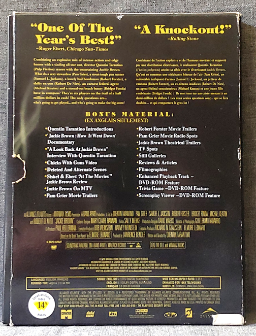 Jackie Brown (Collectors Edition) 2 Discs – Directed: Quentin Tarantino – Featuring: Pam Grier, Samuel L Jackson, Robert Forster, Bridget Fonda, Michael Keaton, Robert DiNero – Used DVD – MGM 1997