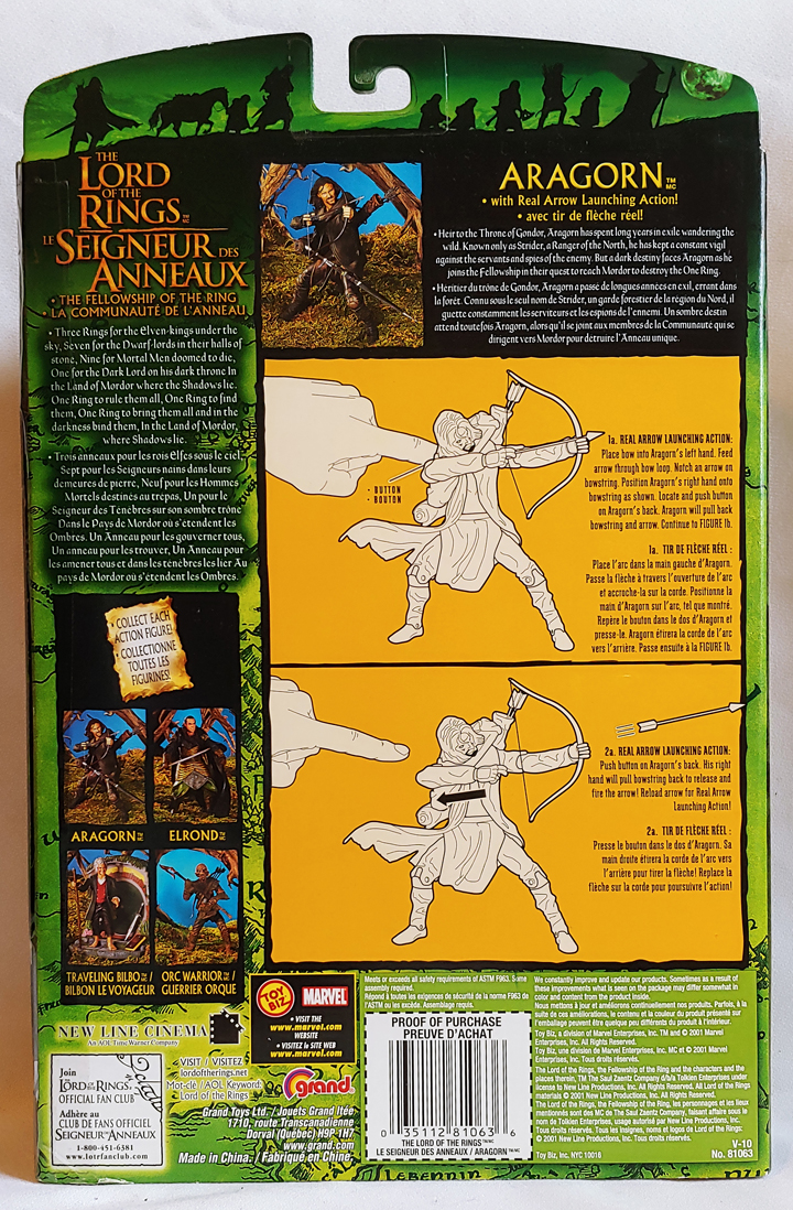 Lord Of The Rings: The Fellowship Of The Ring – Aragorn. Arrow Launching Action Figure