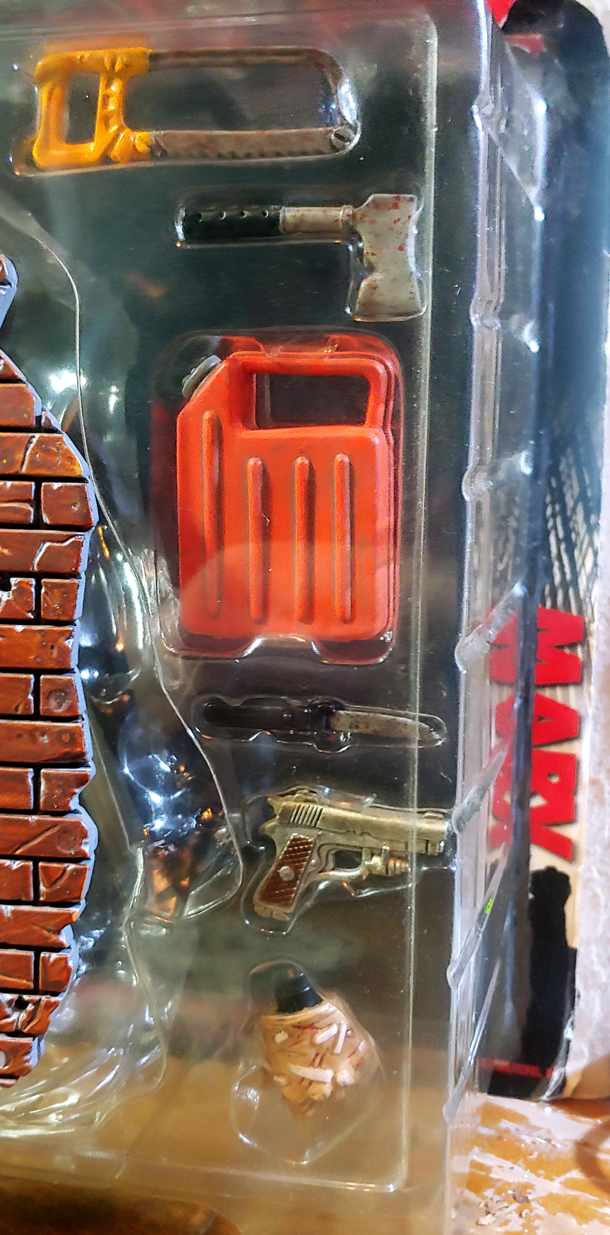 Complete with custom diorama, Gas Can, Hack Saw, Pistol, Knife, Hatchet and Hand