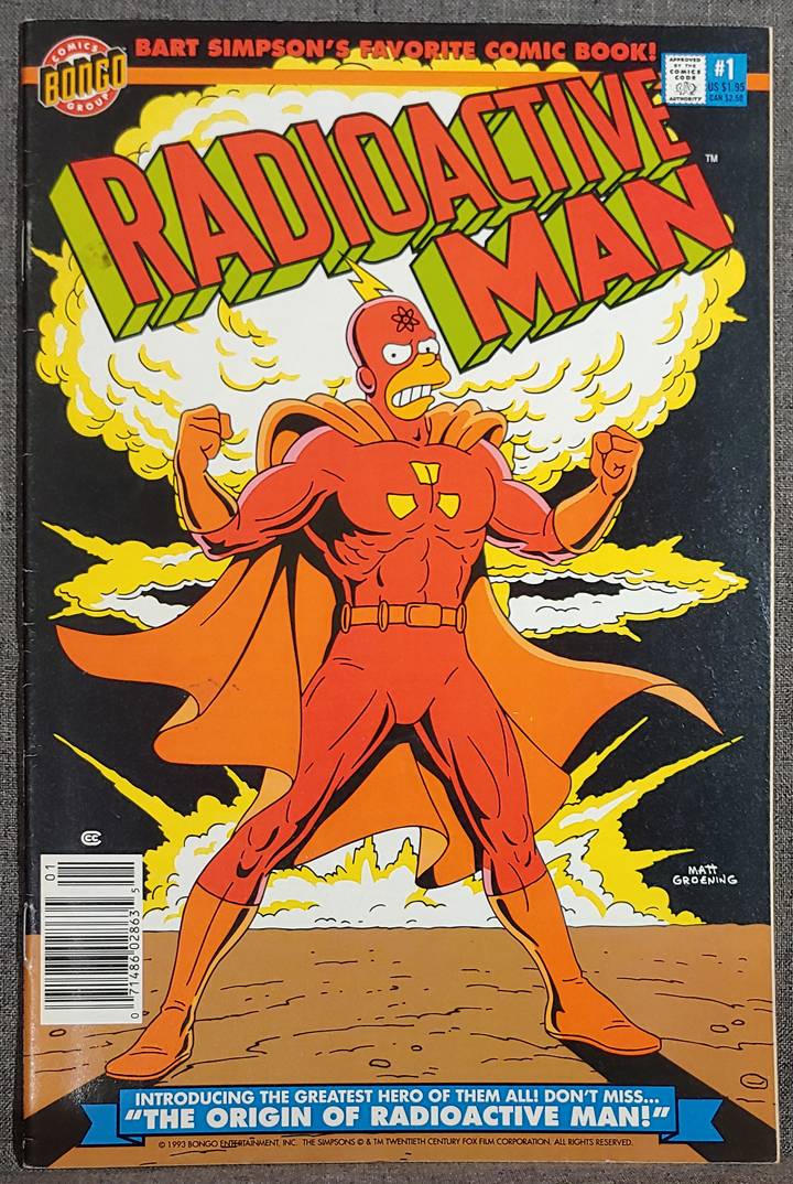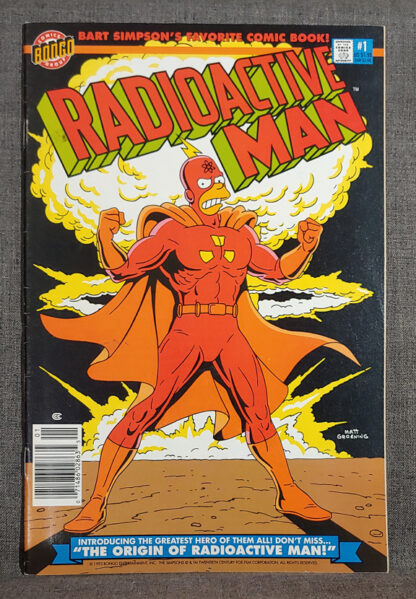 Radioactive Man – Vol. 1 No.1, 1993 Bongo Comics – Newsstand EditionĀ – Modern Age Comic – Grade: Fine / Very Fine 7.0 – Note: Radioactive Man is a 6-issue limited series, with odd numbering. Explained in the first issue foreword by Matt Groening