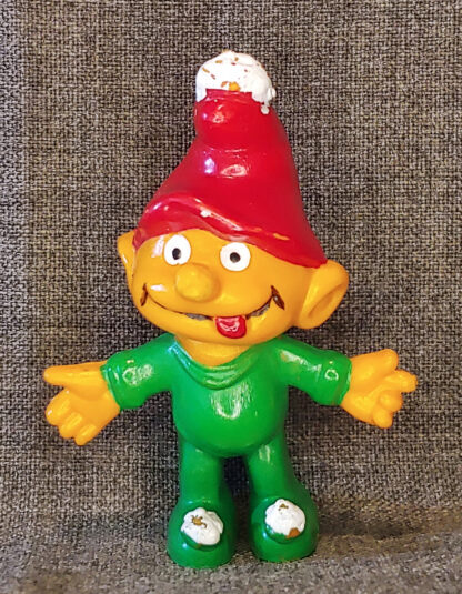 COMMUNIST SMURF! WEARING GREEN TRACKSUIT. SO HIGH ON BATH SALTS, HE’S TURNED ORANGE!