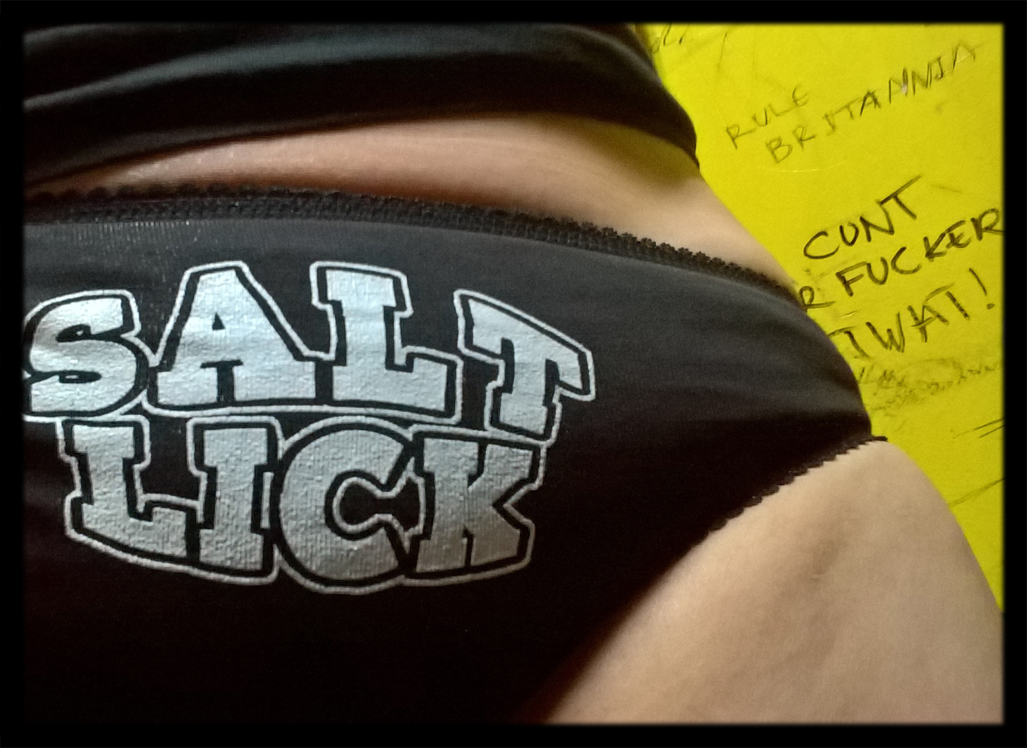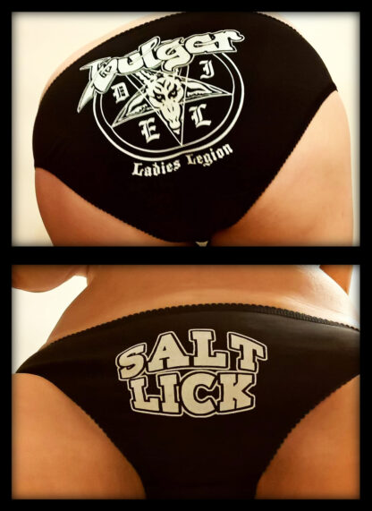 White Print – Salt Lick ( on front ) Ladies Legion ( on back )